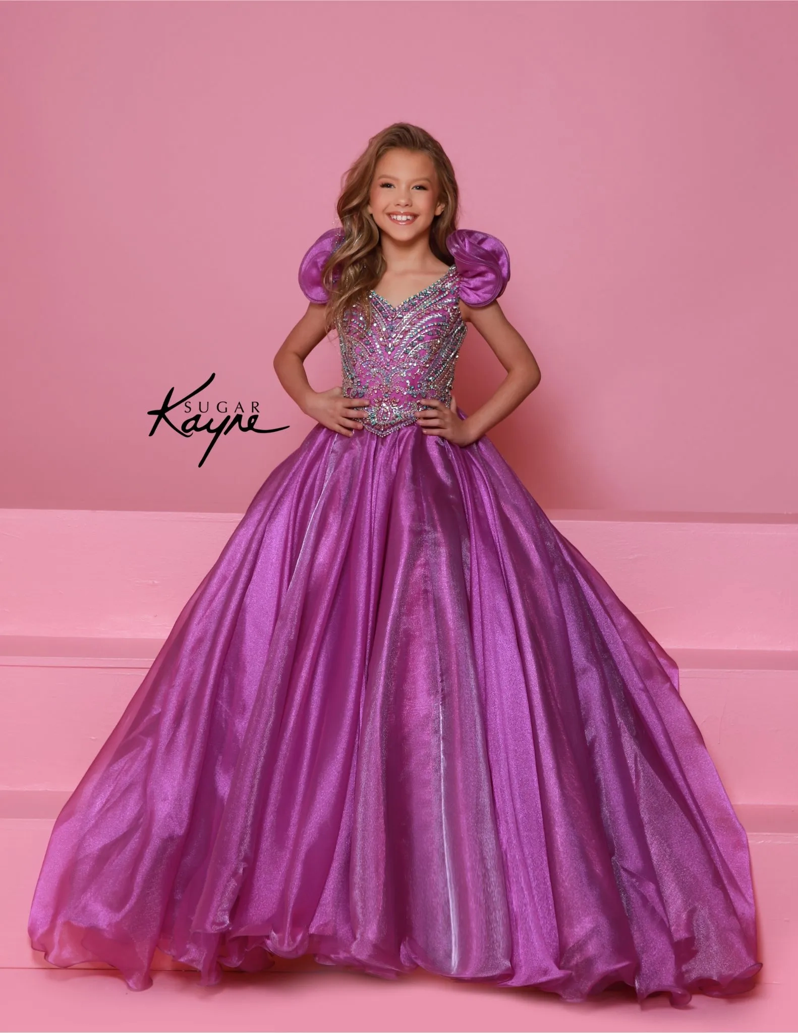 Transform into a twinkling starlet with this Metallic Organza Gown. The beaded bodice adds a touch of sparkle to this enchanting ensemble. The delicate ruffle sleeves create a charming look!
